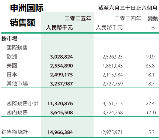2025年上半年,銷售額,除了中國區下滑(-2.1%), 其它地區增長都還不錯: (美國世界杯有拉動吧?)