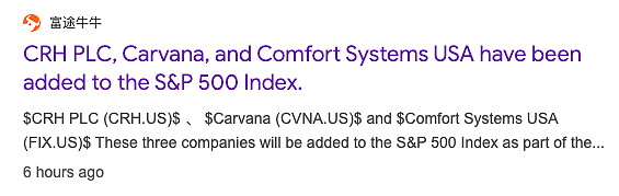 (乌克兰重建概念股)CRH 加入标普 500 指数