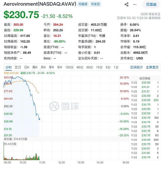 $Aerovironment(AVAV)$ 因为一个分析师的评级降级,振幅接近 30% “Raymond James将评级从Strong Buy下调至Underperform,理由是Space Force将重新竞标SCAR(BADGER)项目(公司最大单一项目,潜在价值约14亿美元)。”
