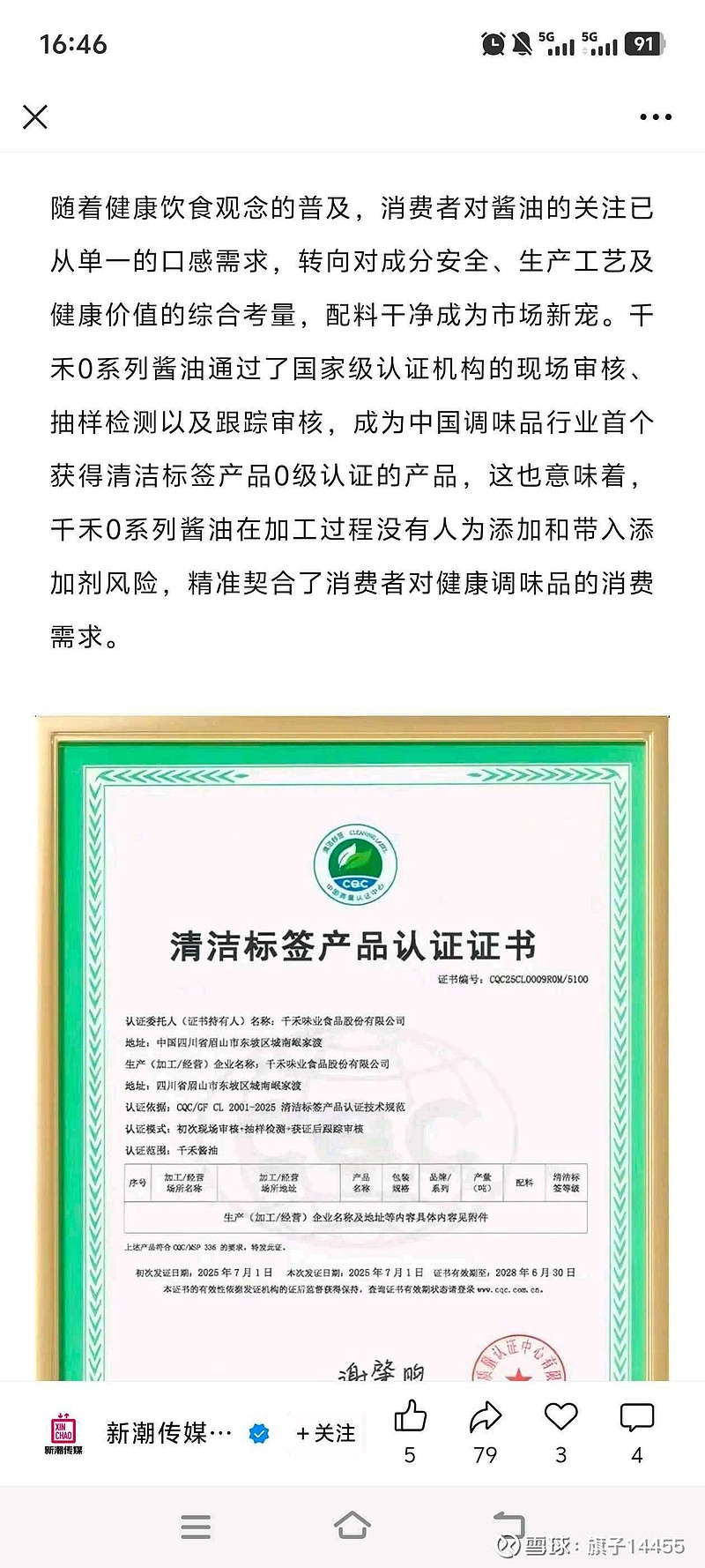 从千禾拿到第一个清洁标签认证已经过去4个多月了,为啥海天等一众企业还没拿到清洁标签认证?酵母抽提物不属于GB 2760-2024规定的食品添加剂,而是食品配料。所以酵母抽提物不是海天拿到认证的障碍。那障碍到底是什么?同样的蒙牛、伊利等大品牌的0添加酸奶都多少有果胶、淀粉、蛋白粉等物质,反而一些内蒙古二线品牌酸奶的配料表非常干净。$千禾味业(SH603027)$ $海天味业(SH603288)$