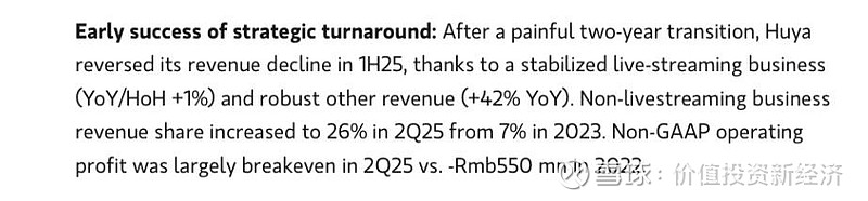 就像华晨中国的Option value 是新世代车,虎牙的option是游戏。在腾讯集团的大力支持下,虎牙转型已经取得了初步的成功,今年第二季度游戏增长42%,是总收入的26%,从2023年的7%占比大幅度提升。但看看RMB2.2bn的EV,市场完全没有给这部分任何估值,是个免费option。