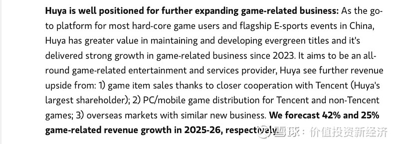 在腾讯大力支持下,虎牙已经成为腾讯集团唯一的游戏直播和Esports平台 (douyu公司因为国内反竞争条例腾讯收购失败),在这样的背景下,虎牙的成功应该不会有太大的问题。当游戏的增长可以盖过直播的负增长的时候,市场就会给虎牙这个Option价值了,和tencent音乐subscription增长超过直播的时候,股价就会大涨的概念一样。这是某个投行分析员写的。