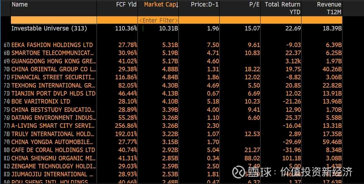 备注:这些都是Bloomberg的screening, 不代表数字全都对,也可以把金融股去除掉。