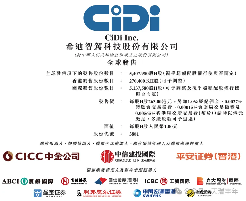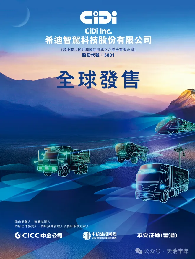据最新消息,希迪智驾科技股份有限公司(简称“希迪智驾”)已于2025年12月11日正式启动公开招股,计划于12月19日在港交所主板挂牌上市,股票代码03881.HK。