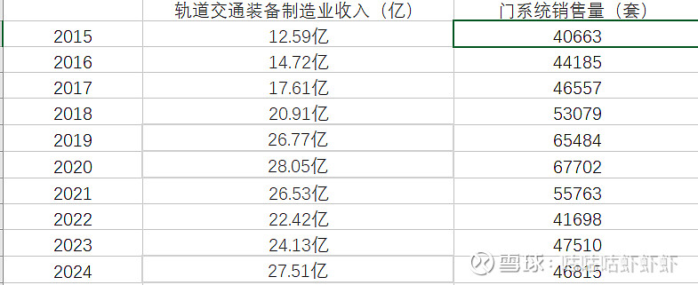 看回去年2024年的财报,门系统销售量是接近4w7套,离2020年的数量还有一定的差距,然而2024 年公司轨道交通板块营收与 2020 年基本持平,都是接近28亿,这是否说明公司的业务拓展更宽了?