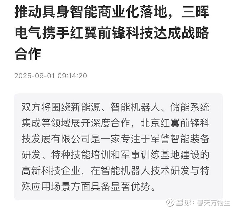 当具身智能从实验室走向产业落地,军工场景正成为其最具爆发力的应用突破口。2025年9月1日,三晖电气与北京红翼前锋科技(红隼防务Kestrel)正式达成战略合作,双方将围绕新能源、智能机器人、储能系统集成等核心领域展开深度协同,标志着民用电气技术与军工特种智能装备的跨界融合迈出关键一步。
