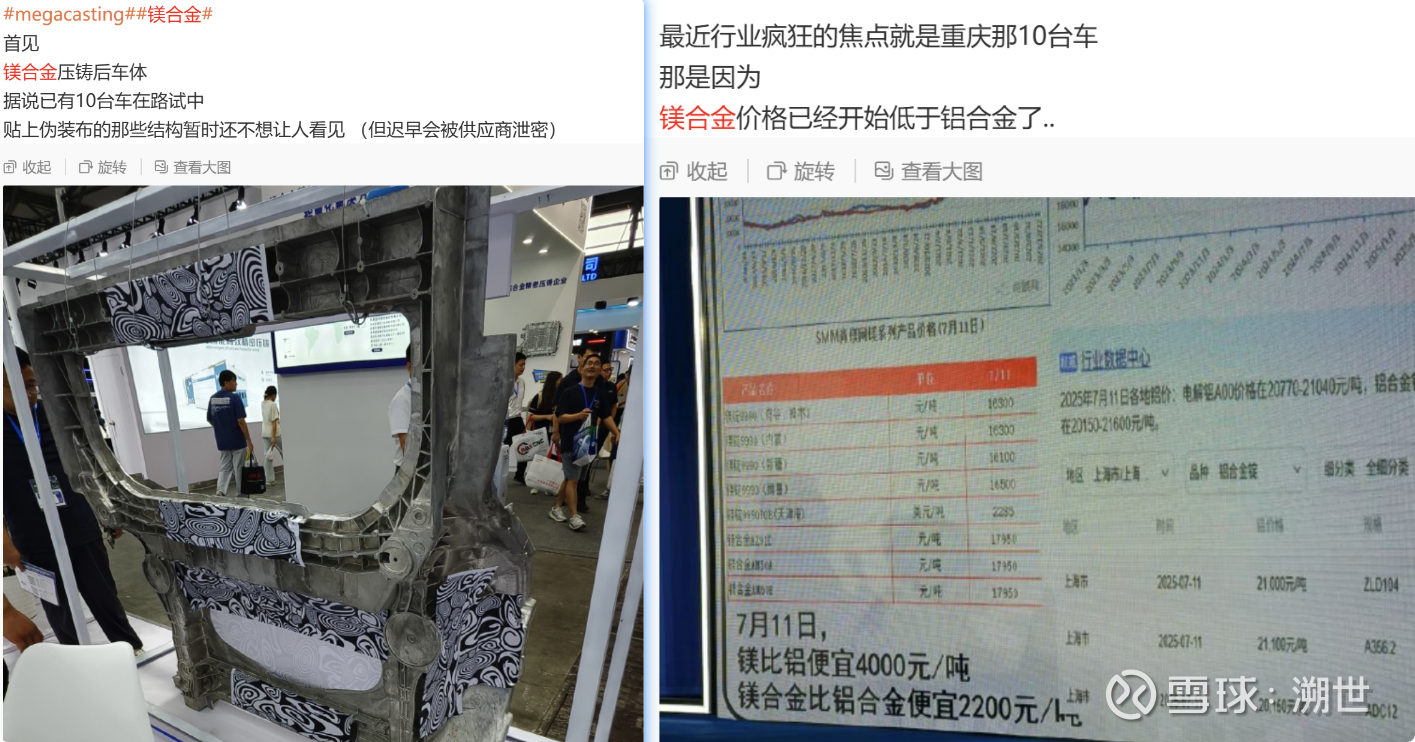 重申一遍,这部分不为荐票。中报都发出来了,诸位也可看到,镁合金这一年来的低位价格并未按照低价->促需->电车、机器人轻量化应用给宝武带来多少营收与利润。早在24款M7上,仪表台横梁支架(CCB)上就有镁合金一体压铸的应用,包括上汽的电机外壳,这些都是小大小闹,有望让宝武们真正尝到甜头的的是车的大构件,大应用。这正导向赛力斯和重庆大学等合作方解决了什么,镁合金的大应用要克服什么?