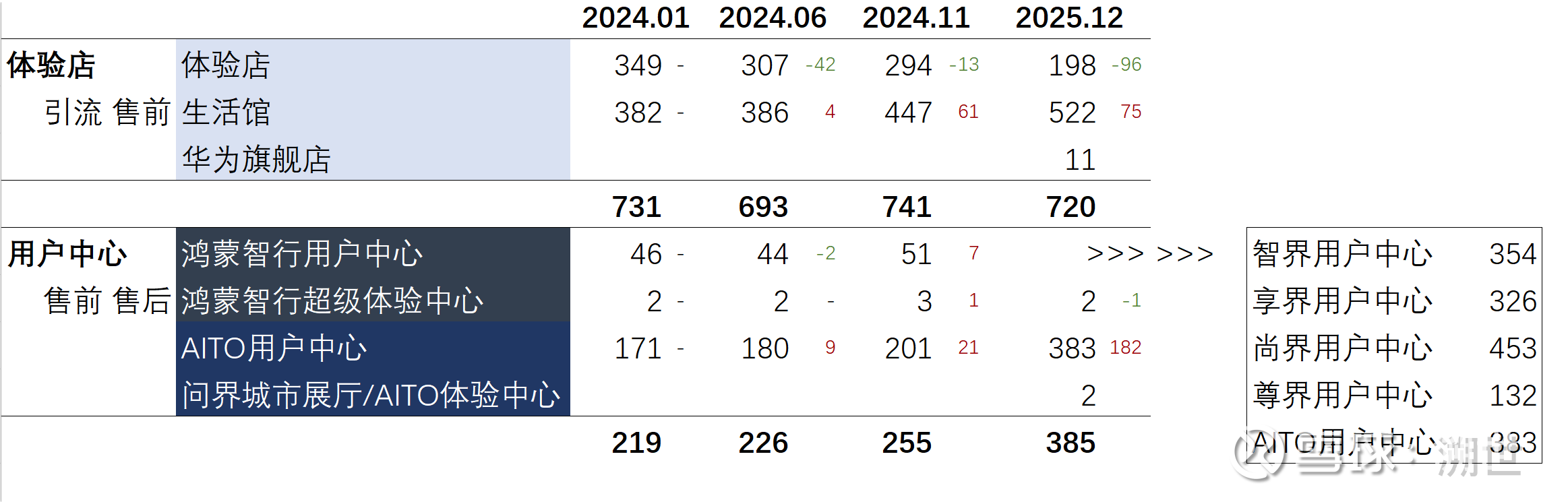 “建立联盟层面的营销服一体化操盘机制,实现品牌协同、资源互补、提升整体市场竞争力”——我并没有看到某些朋友讨论的“分网完又要合网”、“问界渠道要被吸血”的信息啊。先来看下图的渠道统计(前两天的帖子有朋友问,我爬了一份数据,但我想当然的把四界授权的元老级鸿蒙智行中心筛出去了,造成了问界用户中心的漏算,下图已做改正。数据来自hima和aito的网站)。