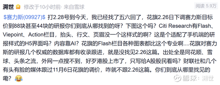 下图是我昨晚的发问。还是得问,论坛有朋友贴出了花旗2.25日研报的全文,以及评论区有给出的一家境外媒体的报道链接。