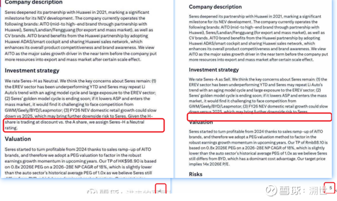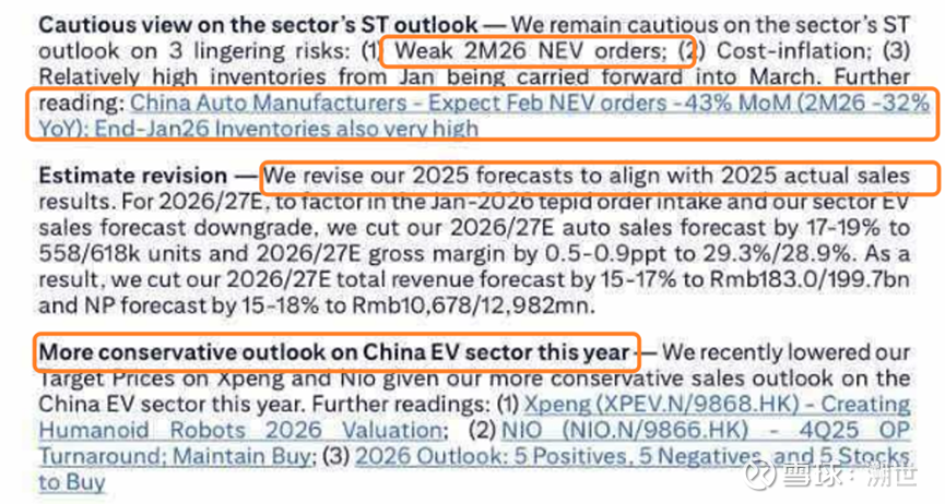 4)延伸阅读补充了对小鹏和蔚来的观点,朋友说这是正常的peer comparison环节…OK,这个章节一共就两页,小鹏美股港股赘述两轮占了一页多?给了估值系数,却不给估值目标,戛然而止。Investment Strategy章节提及一众车企,包括花旗的电报文也提及诸多车企,这里你甚至不愿意出个图表给个横向的大对比?我知道花旗最近只吹了BYD,看好0.5个吉利和零跑,看空所有中国车企,但研报我觉得要再多用点心。