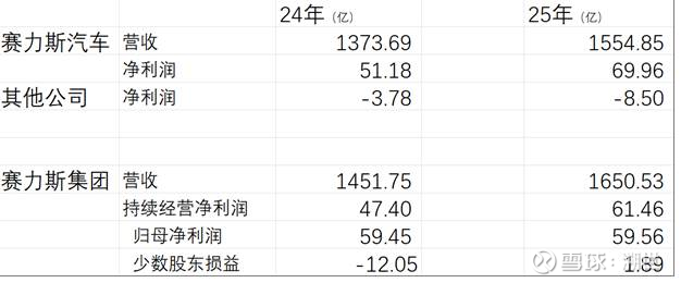 大伙是基于59.45亿这个基准盼80-90亿的成长。可我自己都忘记了——我在24年8月点评赛力斯24半年报时专门讲过少数股东权益的应用——金康动力,凤凰智创科技、赛力斯汽车设计院这几个在24年兼具,或者纯研发角色的主体亏掉了不止33亿(其中凤凰智创科技在年报中不再分部披露,以下半年强于上半年的研发强度看估算得出——这一点,包括具体的成果都可以从我目前主页置顶的帖子得证),但有重庆地方国资作为少数股东的保驾护航,加上借由赛力斯汽车穿透到汽车销售公司分得的9.65亿分红(这也是24中报那会大家都说赛力斯藏利润一事,实际没有,因为少数股东在这里掩饰研发投入带来的亏损的角色更重一些),整体上少数股东为赛力斯集团承担了12.05亿的亏损,故24年持续经营净利润只有47.40亿,但归母净利润却要加回这12.05亿,有59.45亿之多。