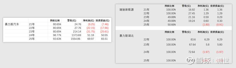 小康是注定要离开历史舞台的,蓝电去年在烧钱,26年也不用担心,会引入国资出表只记投资收益——我之前的帖子也多次肯定蓝电的战略意义,蓝电带着新品牌,与字节的加持应该过俩月就会有资本运作和品牌宣发上的结果。而瑞驰也在重新开始发力,砸研发、堆全新品类产品,我之前分享过他们的全新品类的轻卡竞争力十足。问界研发出了这么多成果,随便迁移下放过来(已经在下放)给自己擅长的板块没毛病。所以赛力斯湖北(蓝电)和瑞驰带来的归母净利润上合并3.73亿亏损我觉得完全可以接受。蓝电、瑞驰投入(渠道铺设与研发费用)增加带来亏损是正是第四个原因。