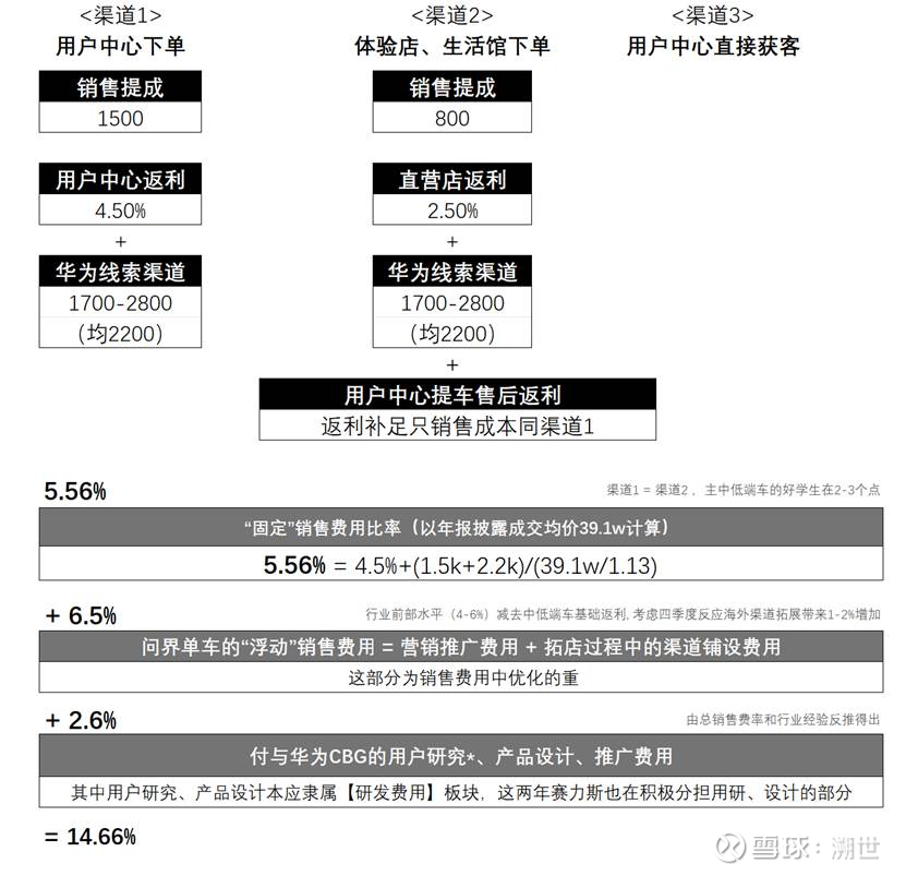 这是老话题没啥多说的,上次拆解的这么细,是因为三季报时有人觉得江淮花的少,赛力斯花的太多了,我便给出了明细。这次做了个表格,诸位应该能够一眼看清这14.66%的销售费率如何构成?多少去向了华为?