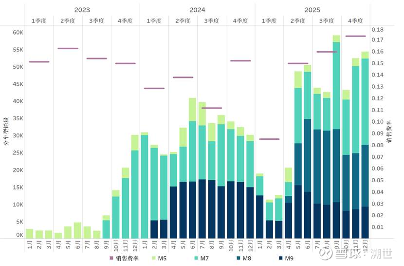 所以25Q4销售费率的高依然没法解释,包括25Q3的销售费率便拔升到了一个历史巅峰的水平,这时候M8还在续写两万月交付的战绩,M7刚刚大改,后面的四季度也仅有M9给了一定的暗补——请回到前面附过的这两年用户中心开设数量的图表: