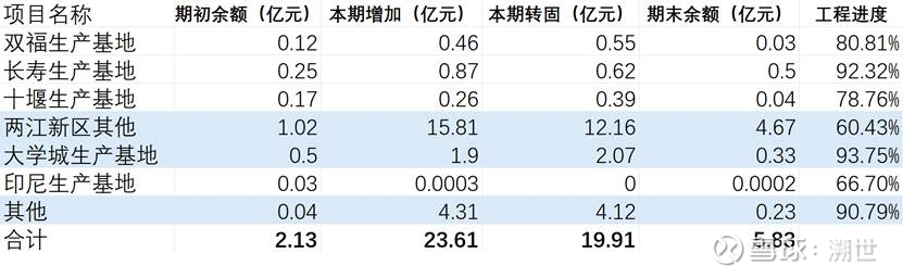 其他项目就很值得玩味了,除去泸州容大没有单列,明细的项目基本囊括赛力斯全部的核心生产基地,4.31亿的增加项不知道是去向哪里。