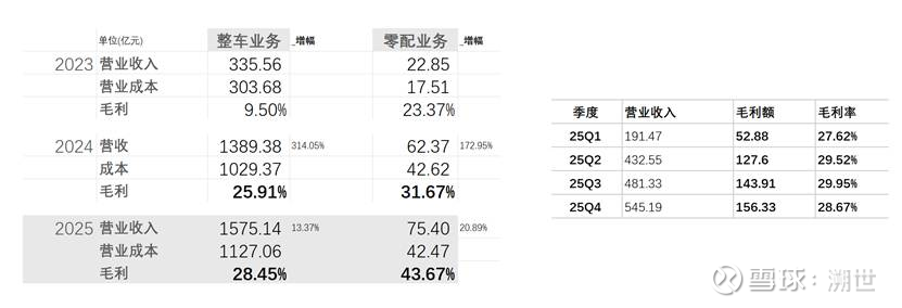 可另外可喜的是,不单是整车业务毛利全年维持在行业头部的水平,较24年有较大增长。零配业务的毛利增长更甚。由于新能源汽车的保养周期、费用更低,其营收基本照应来源于金康动力的电机,与赛力斯的增程器——