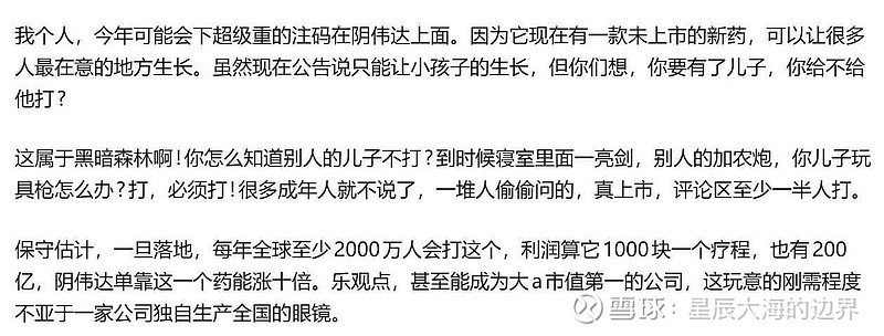 这个药过了临床,2000万人次乘1000元利润,200亿利润。