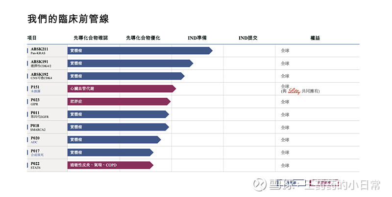 而更早研管线,不仅有一系列高价值的肿瘤资产,更是扩展到非肿瘤领域。比如下图中的P151属于一款心脑血管代谢的分子,而P022则是自免的分子。