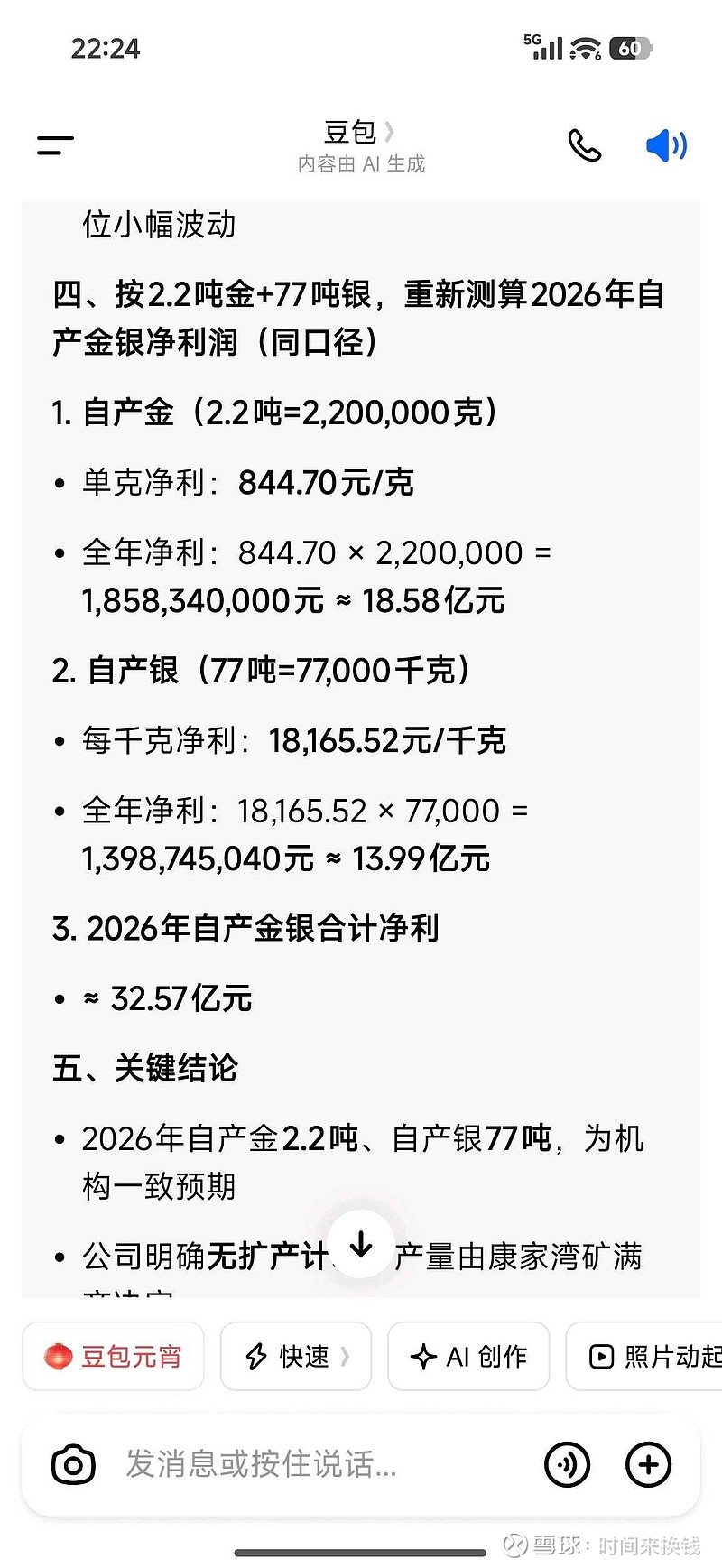 豆包数据,加上硫酸4到5亿净利润,铟1到1.5亿净利润,铅锌冶炼金银小金属我什么都不算,越算越不对啊,这么高!