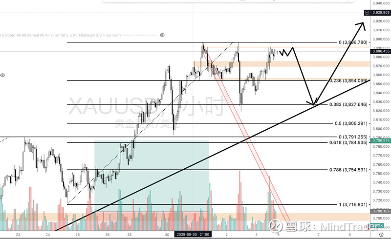 黄金出现潜在的回调形态,看是否能给入场机会。