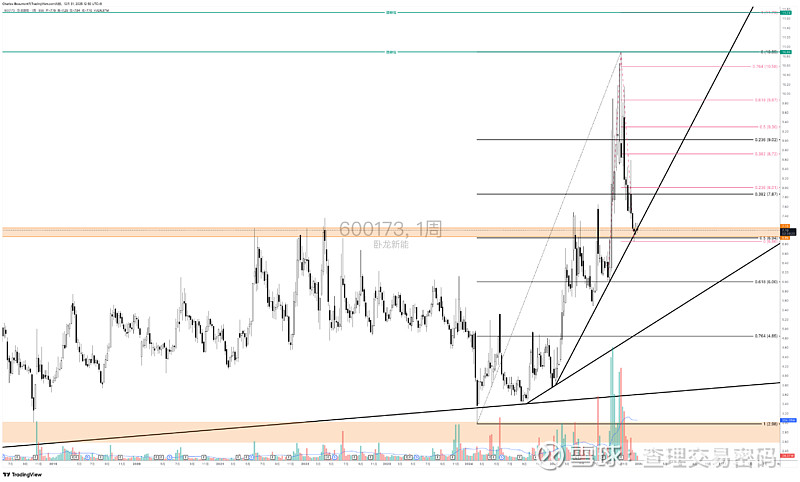 比较好的入场机会,支撑位+趋势线+斐波那契0.5的位置