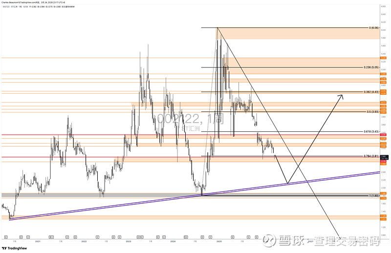 当然也可能直接在0.764反转,这个位置也是支撑位。