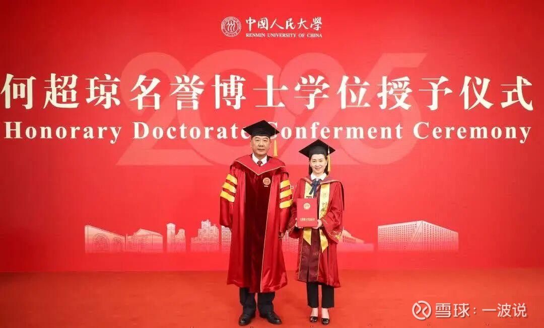 他说,授予何超琼女士名誉博士学位不仅是对她卓越成就的崇高致敬,更是对她与人民大学“精神同频、价值共振”的高度认同。