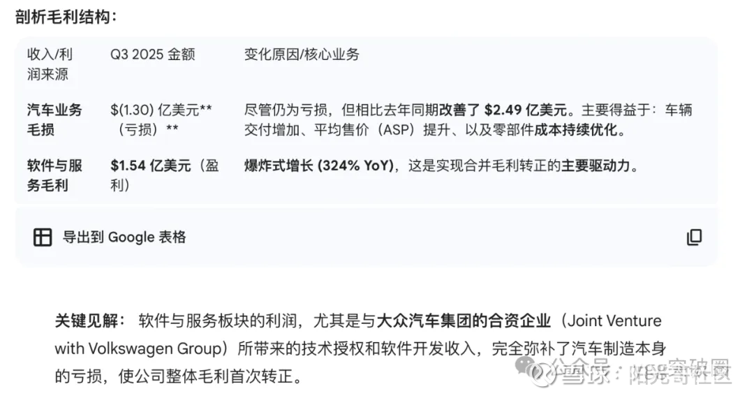 毛利:Rivian另一部分收入大头就是软件和服务,25Q3能够毛利转正主要原因是和大众有合作,Rivian本个季度软件与服务毛利爆炸式增长,覆盖了造车的毛利亏损。