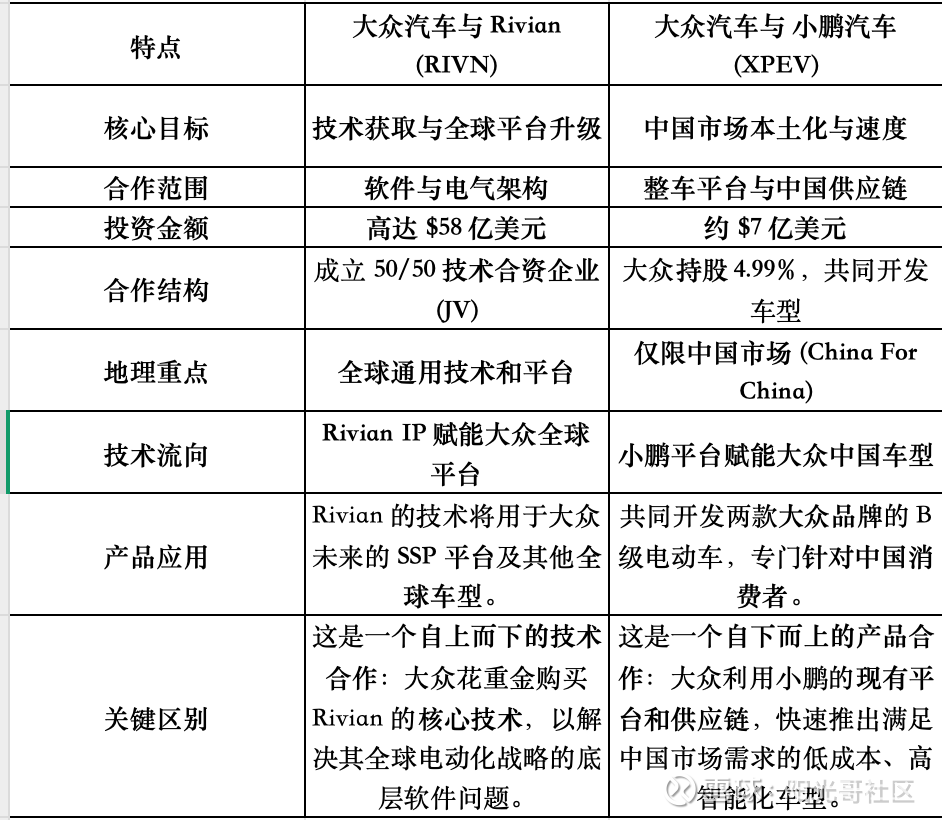大众与 Rivian vs 大众与小鹏汽车合作区别对比