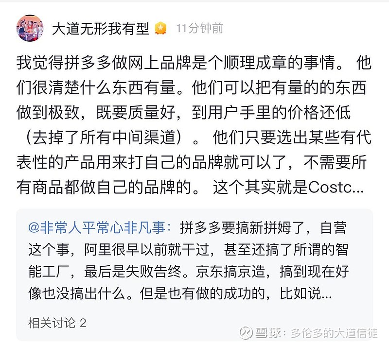 拼多多离”线上Costco”还有多远?段永平说10年。但方向已经对了,第一步已经迈出去了。做投资,有时候最重要的不是知道终点有多远,而是确认方向没有走错。
