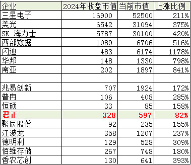 3,国内第1是香农,涨幅排名分别为香农>德明利309%>普冉 285%>江波龙237%>百威180%>兆易创新172%>恒烁股份158%>聚辰股份155%