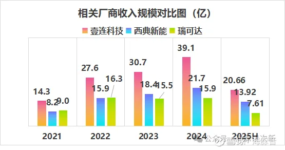 从收入规模看西典新能与壹连科技的差距正在进一步缩小,盈利水平方面西典新能在24年已大幅追赶上了壹连科技,到25年上半年已小幅超越并接近瑞可达的利润规模。