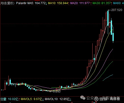 就在这个背景下,美股悄悄崛起了一个军工 AI 的超级龙头,就是$Palantir(PLTR)$ 。这家公司 2003 年成立,2023 年才刚刚扭亏为盈,妥妥的一匹黑马!2024年6月之后一年半年时间,股价直接暴涨 10 倍,到现在市值还超过 3000 亿美元,比波音这种传统军工巨头还高,估值接近 200 倍,成了美股 AI 应用领域里的超级大牛股!