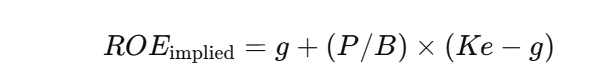 把上面公式倒过来,可以算出:在给定Ke与g下,当前估值隐含的“长期可持续ROE”: