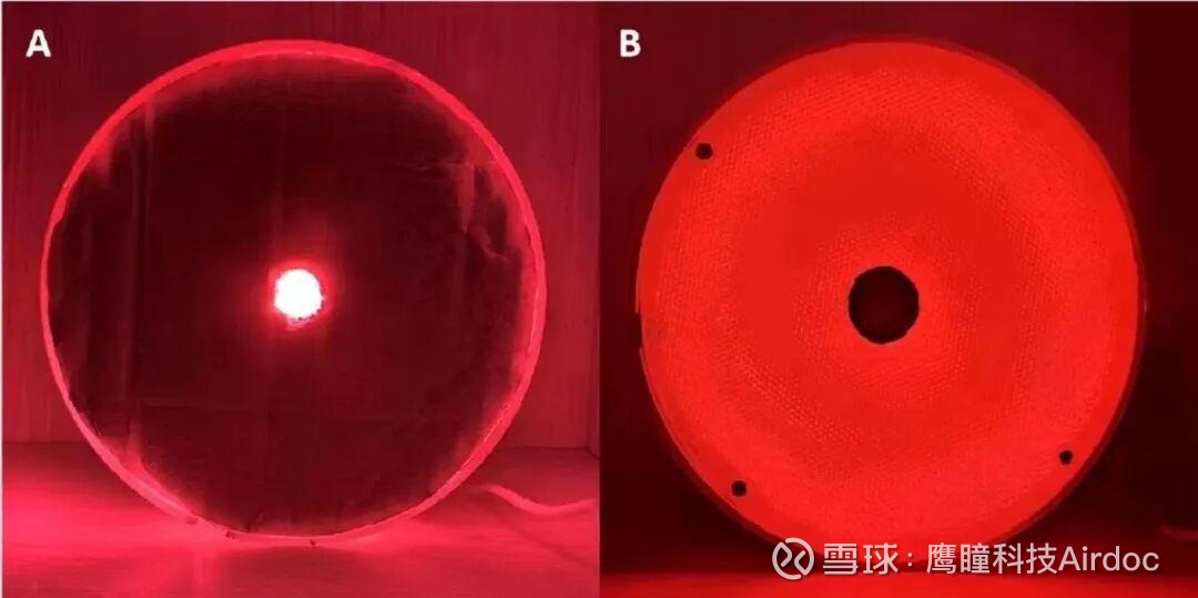 通过对小动物豚鼠的视网膜中央区或周边区进行光照射。中央照射时,暴露直径2cm的中央区域,遮挡周边区域(下图A);周边照射时则相反,暴露周边区域,遮挡中央区域(下图B)。每日上午9点和下午5点各照射3分钟。