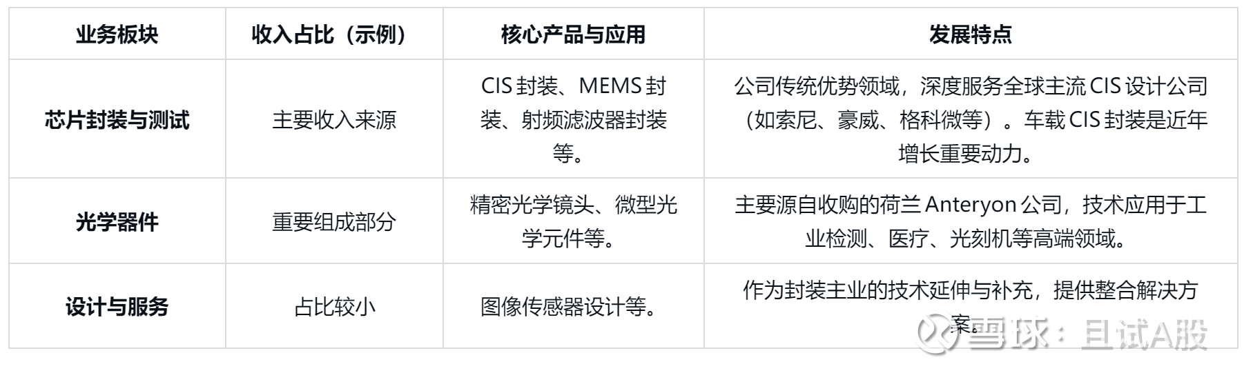 汽车电子:车规级CIS封装已成为核心增长点。同时,在激光雷达光学组件、GaN(氮化镓)功率器件封装(通过投资的以色列VisIC公司)等领域进行布局。
