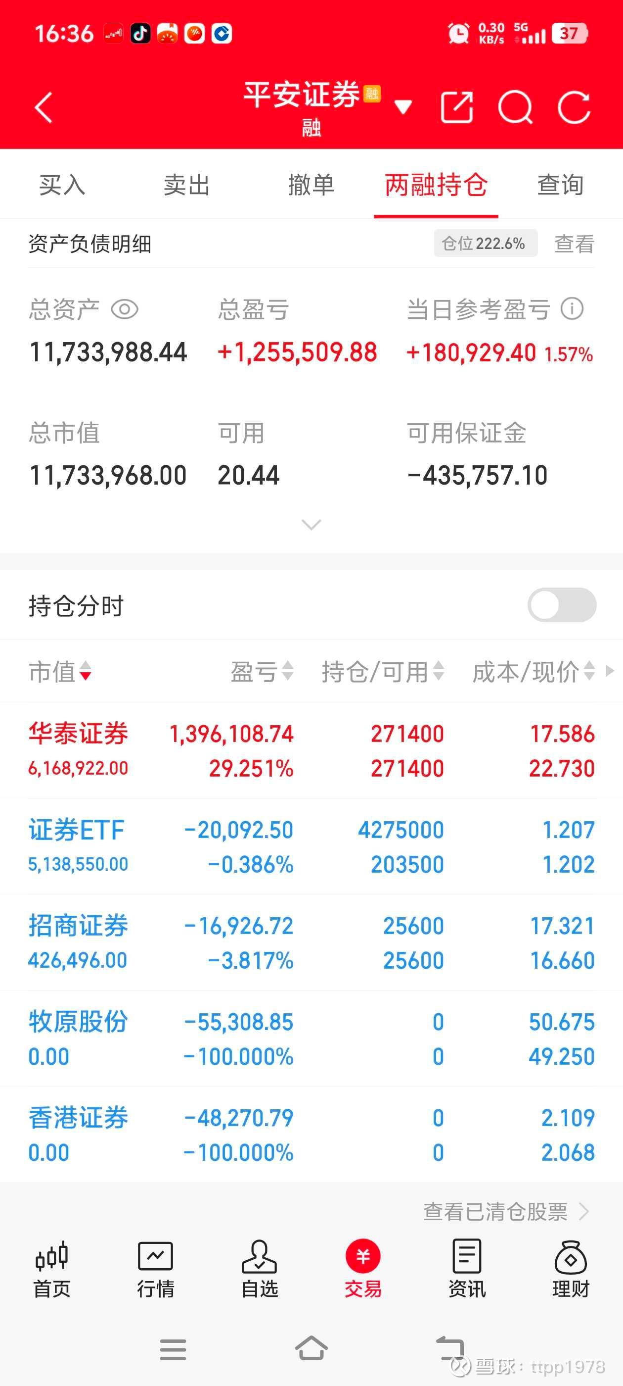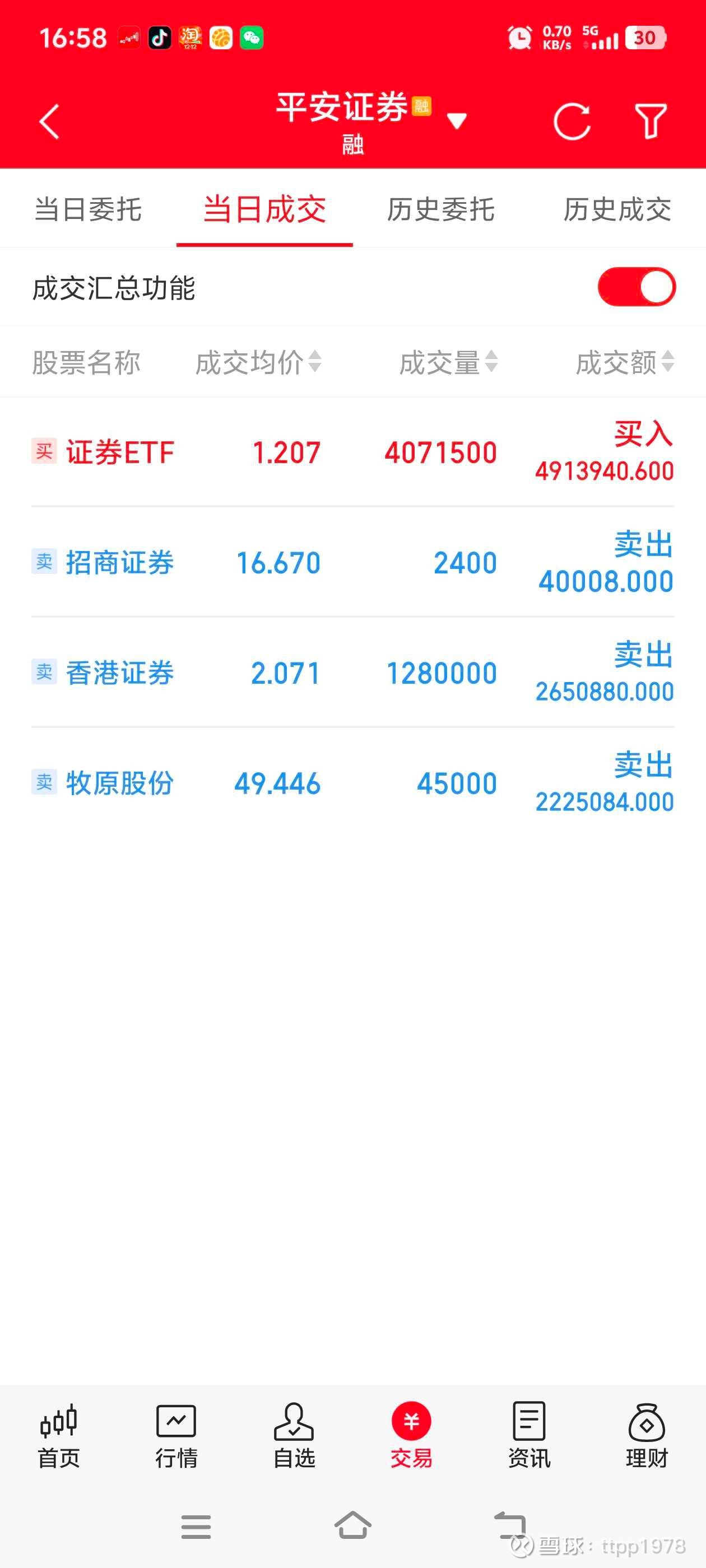 今天我把港券和牧原做了清仓,全部换入A券etf。感觉港券起稳信号还不强,但A券已明显起稳,另一方面为底部加融招商证券做好准备,招商证券目前位置较低,满融被套也无怨无悔。