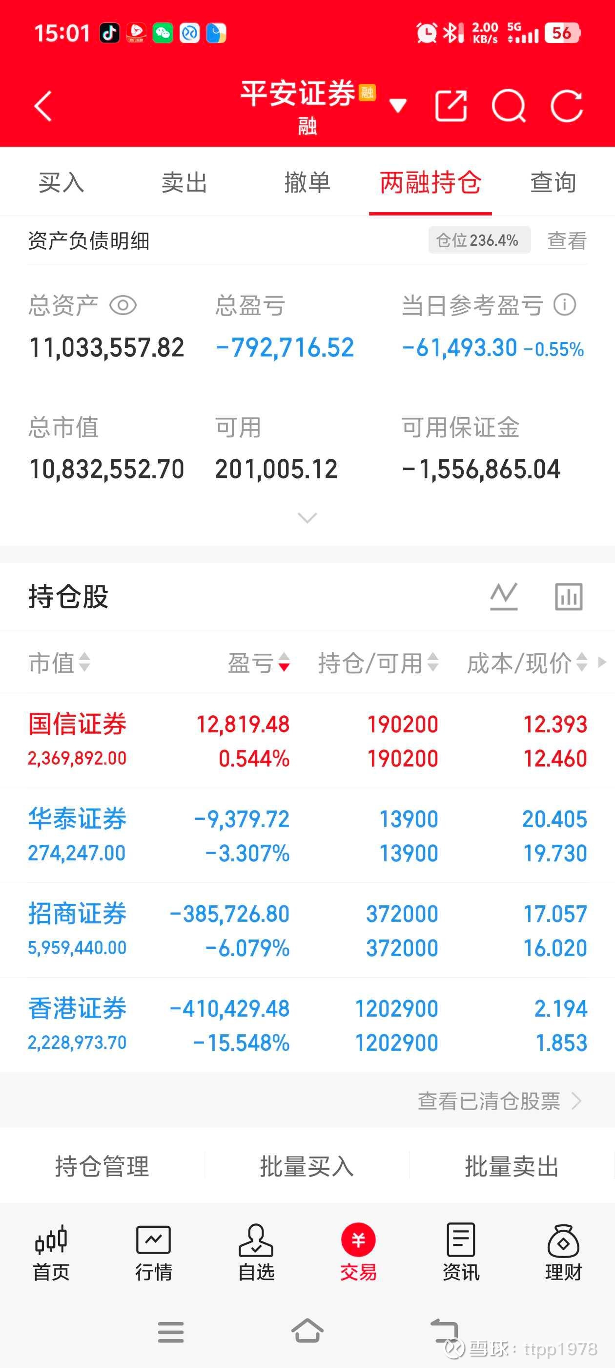 今天我持有的券商都出现了不同程度的补跌,国信证券跌超2%,其余都是微跌。
