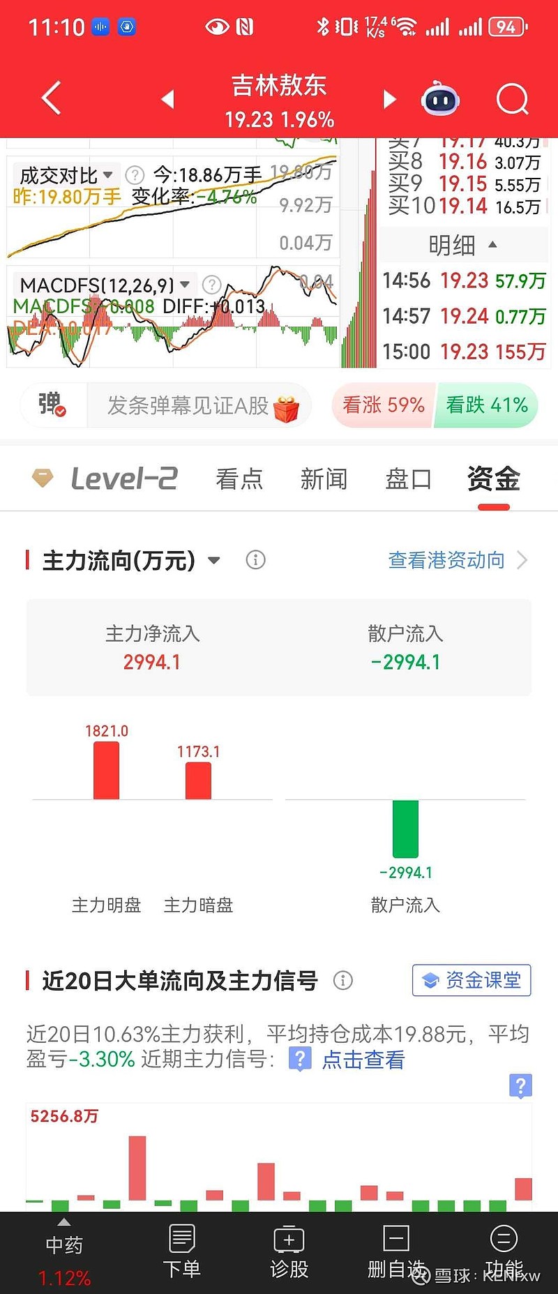 $吉林敖东(SZ000623)$转发大杨线的观点,下周继续加仓,静等花开…《另外还有一点辽宁成大600739和吉林敖东000623,净资产打了六折、八折左右,都持有多家上市公司股权,注意不是实物资产,理论上随时可以变现成相当于股票市值150%以上的现金的。牛市来了,辽宁成大600739,吉林敖东000623的净资产折价必须尽快填平,金子一定会发光的,这次回调有点多,也美美的融资加仓了,呵呵。。。》