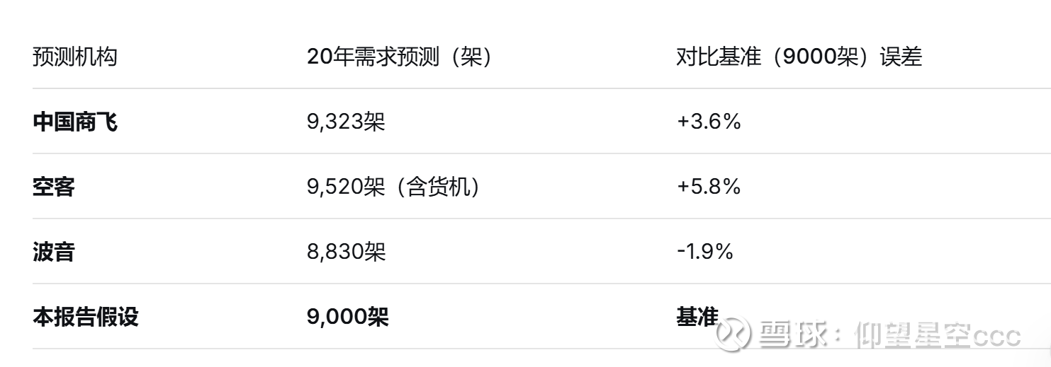 结论:9000架/20年(年均450架)与三大机构预测区间高度一致,误差绝对值≤5%,具备坚实的数据支撑。
