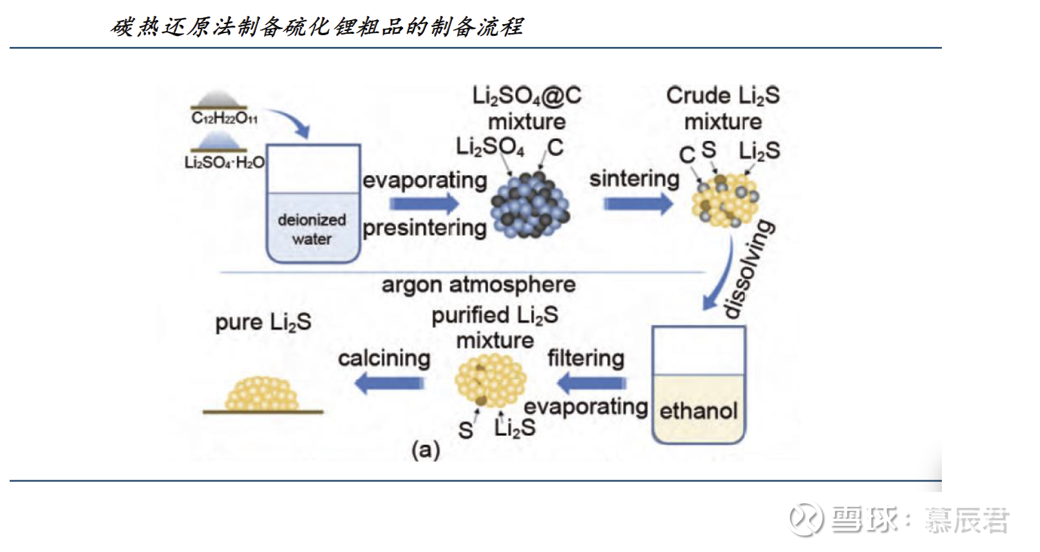 (1)技术:主要采用碳热还原法,利用碳的还原性,以固体锂源、固体硫源为原料,通过高温烧结引发固相反应,生成Li₂S并去除副产物。