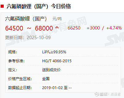 今天的六氟磷酸锂继续飙升4.74%,达到66250元/吨。