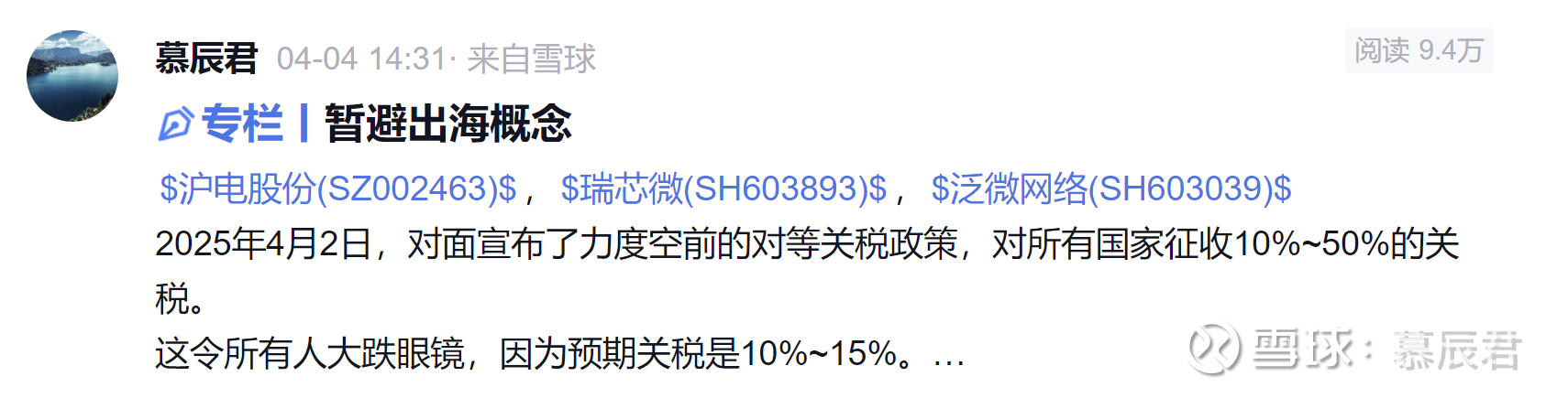 这个显然对出口链影响最大,因此我在4月4日发帖《暂避出海概念》,并提前清空了手里的沪电股份,只保留了瑞芯微,因为瑞芯微是SOC龙头,业绩好到炸裂。