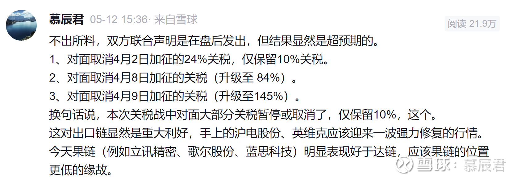 5月日内瓦会谈后,出口链的危机暂时解除,我于是买回了很具有性价比的沪电股份、英维克。