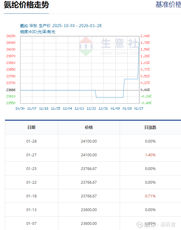 (3)涨价:1月28日,氨纶基准价为24100元/吨,与本月初(23600元/吨)相比,上涨了2.12%。
