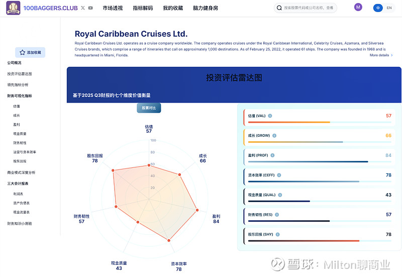 $皇家加勒比邮轮(RCL)$ , 网页链接 截至2025年9月30日的3个月,RCL 实现营业收入 5.14 B 美元,这反映了其度假生态系统在需求侧的强劲动能,尤其是由 Icon Class 等高性能硬件驱动的定价权提升。同期净利润达到 1.58 B 美元,稀释后 EPS 为 5.74 美元,体现了经营杠杆在规模化交付中的释放效率。从资本回报看,ROIC 达到 15.70%,这验证了资产密集型投入向核心业务盈利能力的转化路径。