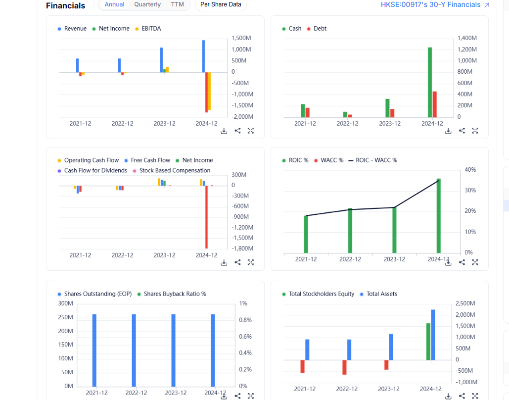 20250508: 趣致集团(00917)。今天在浏览港股的时候,看到这家公司市值不小。留个爪子,贴张财务图。市盈率(动):亏损 市盈率(TTM):亏损 52周最低:27.0 委比:-71.43% 市盈率(静):亏损 市净率:16.78 每股收益:-6.77 股息(TTM):-- 总股本:2.63亿 总市值:278.47亿 每股净资产:6.32 股息率(TTM):--。这种公司怎么可能维持 278亿 市值,加入做空组合。二级市场就是割韭菜的地方吗?