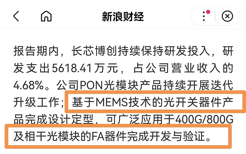 OCS核心器件就是光学MEMS。长芯博创,你说到长芯盛,大多数人第一个想的就是谷歌,50%以上的份额。