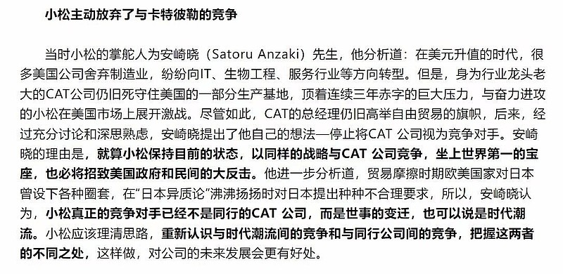 有时候对于商业的理解是很头疼的。当年小松主动放弃了与