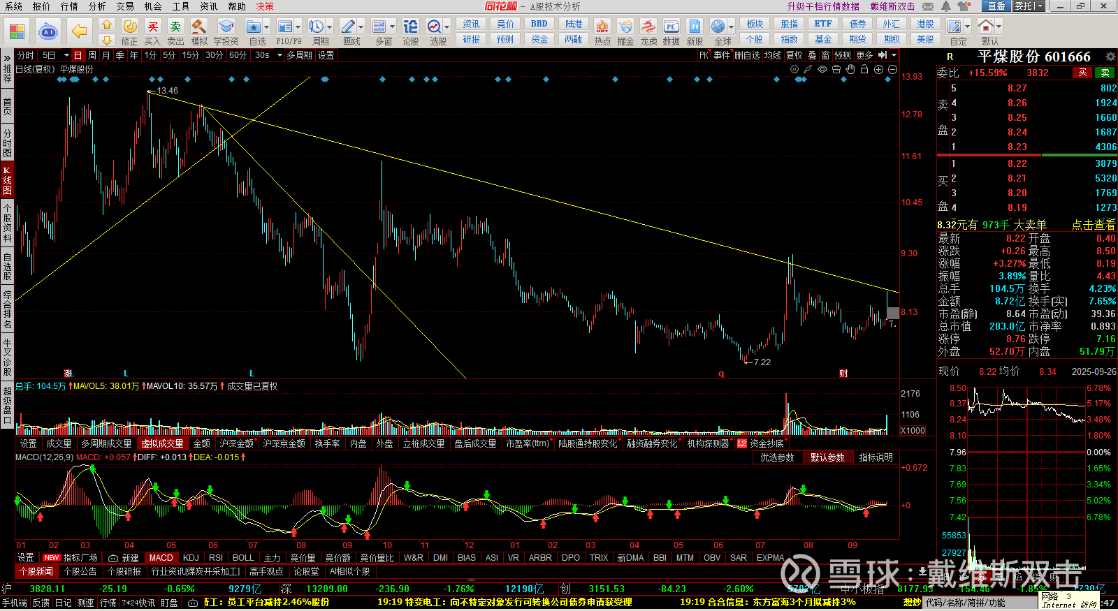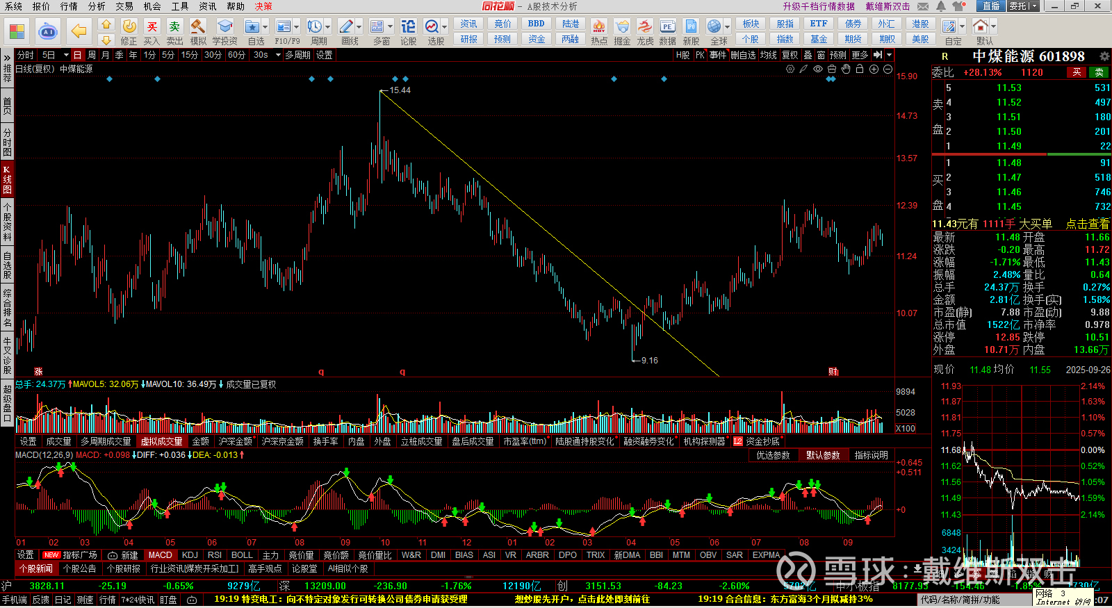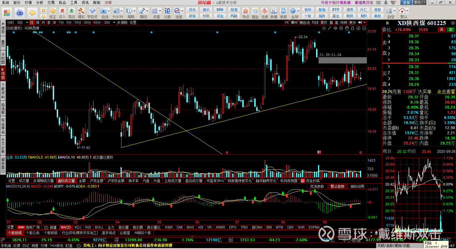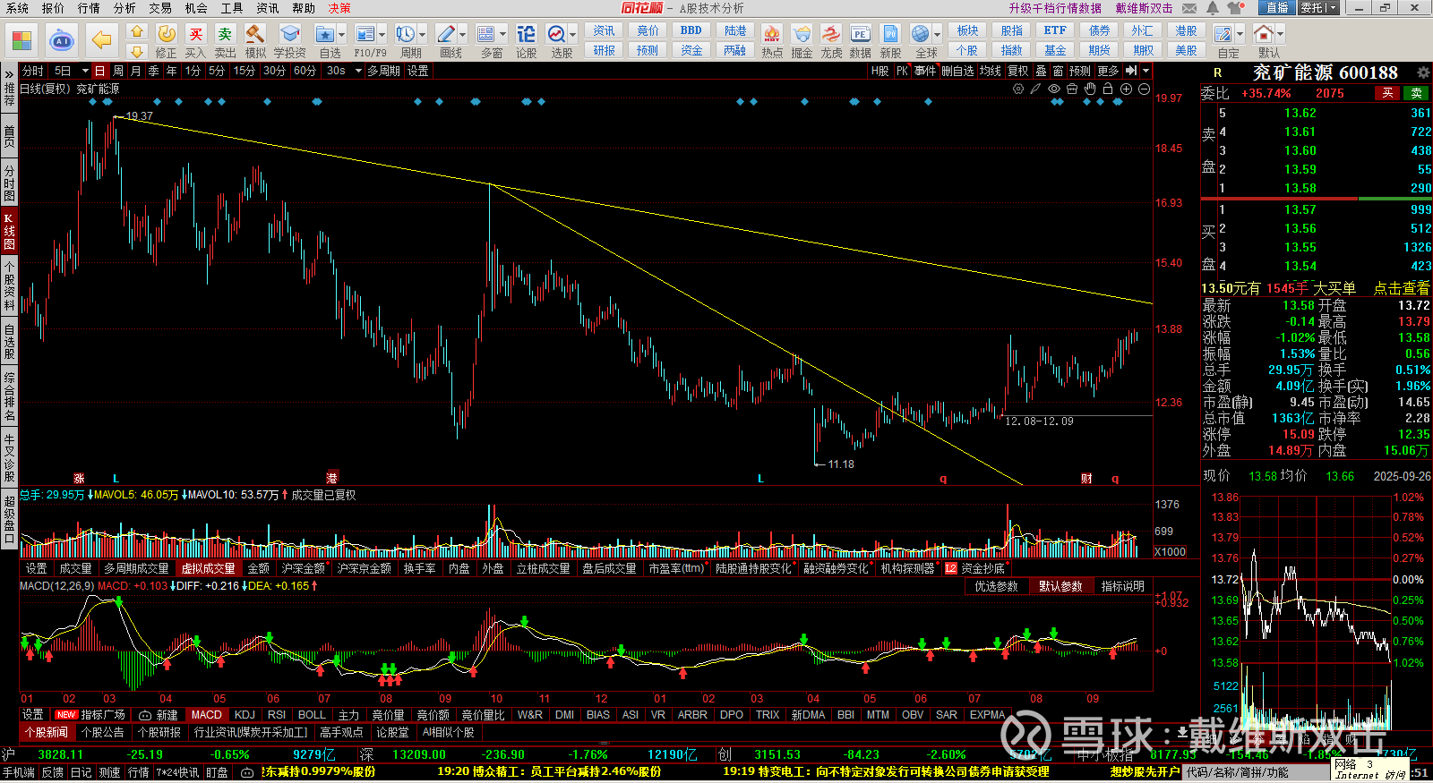 (2) 陕西煤业:一旦跌破上升趋势线,就是确认C浪开始